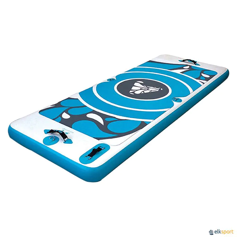 Plataforma aquática insuflável para treino sobre a superfície da água.