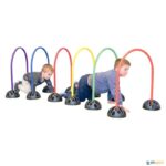 Jogo polivalente de arcos multiúsos — não vais parar de criar atividades com eles! Este conjunto de 6 arcos multiúsos pode ser utilizado para rastejar ou gatinhar, para lançar objetos ou bolas (com os pés ou com as mãos), com o objetivo de melhorar habilidades e destrezas básicas, como obstáculos para percursos de agilidade ou para criar novos jogos. Os arcos são fabricados em plástico muito resistente e duradouro, sendo estabilizados por bases de 390 g localizadas nas extremidades de cada arco.