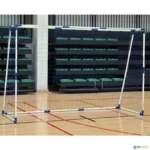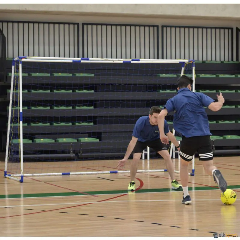 Baliza de aço desmontável. Tubo em aço de 3,2 cm Ø e reforçado com uniões de plástico ABS resistentes a fortes impactos. Rede incluída.