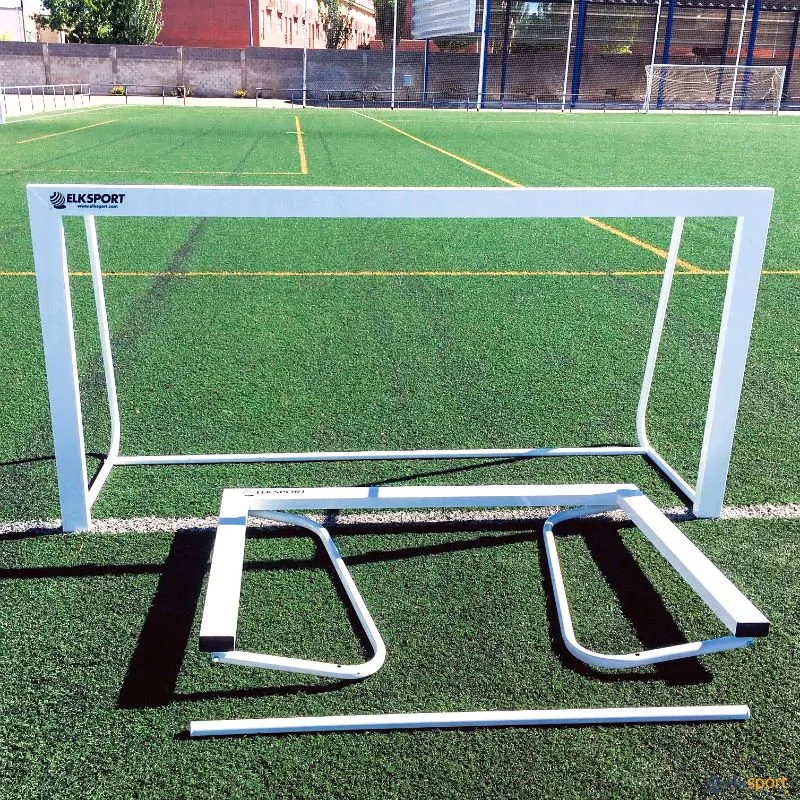 Mini baliza de treino, metálica, dobrável, com ganchos para colocação da rede.