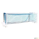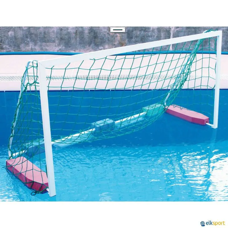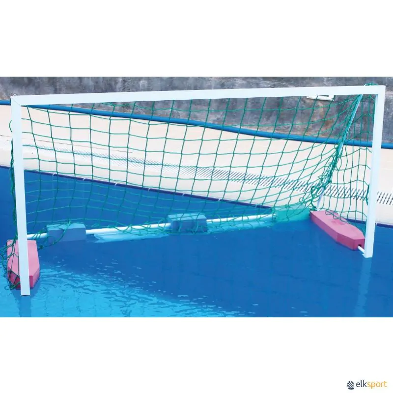 Baliza com postes e trave em perfil de alumínio reforçado de 75 x 40 mm, lacados a branco para maior durabilidade. O restante da estrutura é de aço inoxidável electro-polido (AISI-316). De acordo com as normas World Aquatics e LEN. Com redes incluídas e um sistema de fixação. Flutuadores de alumínio com espuma, 4 rodas para fácil manejo.