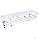 Bancos fabricados em resinas plásticas (material de grande resistência, até 400 kg/m) em tubos quadrados. Resistentes a temperaturas extremas, desde -40°C até +80°C, inalteráveis a ácidos, óleos, gorduras e humidade. Com superfície lisa e sem poros facilitando a limpeza. Material inoxidável. Arestas arredondadas para maior segurança. Banco em forma de caixa em que a parte superior levanta ; em posição fechada temos um assento ; abrindo a tampa, obtemos espaço de arrumação arejado, para diversos materiais.