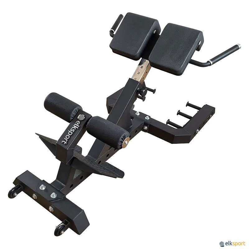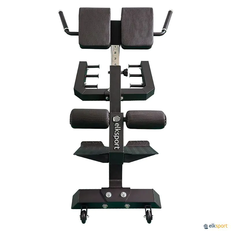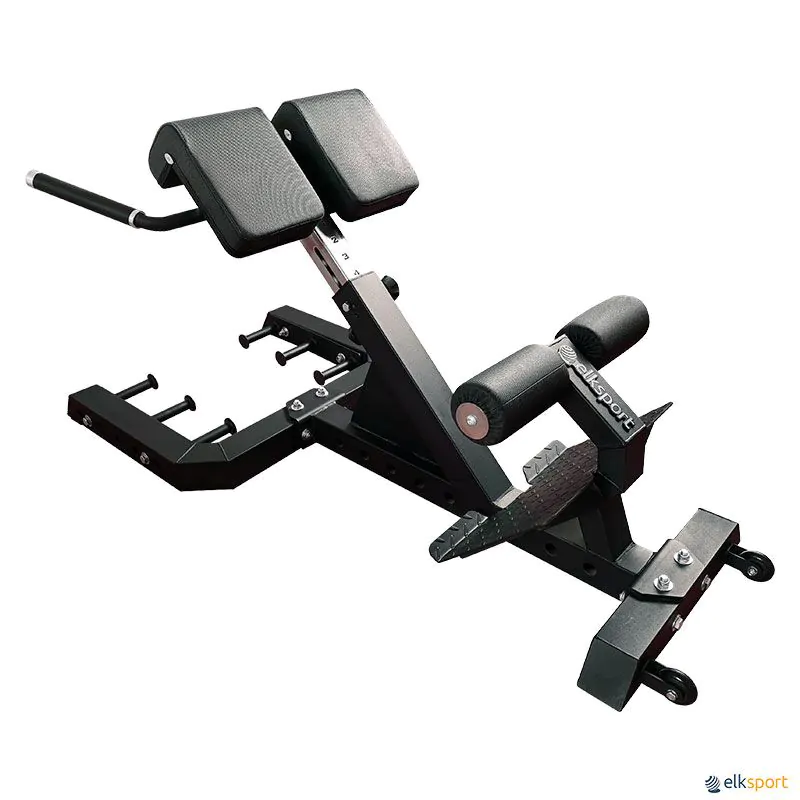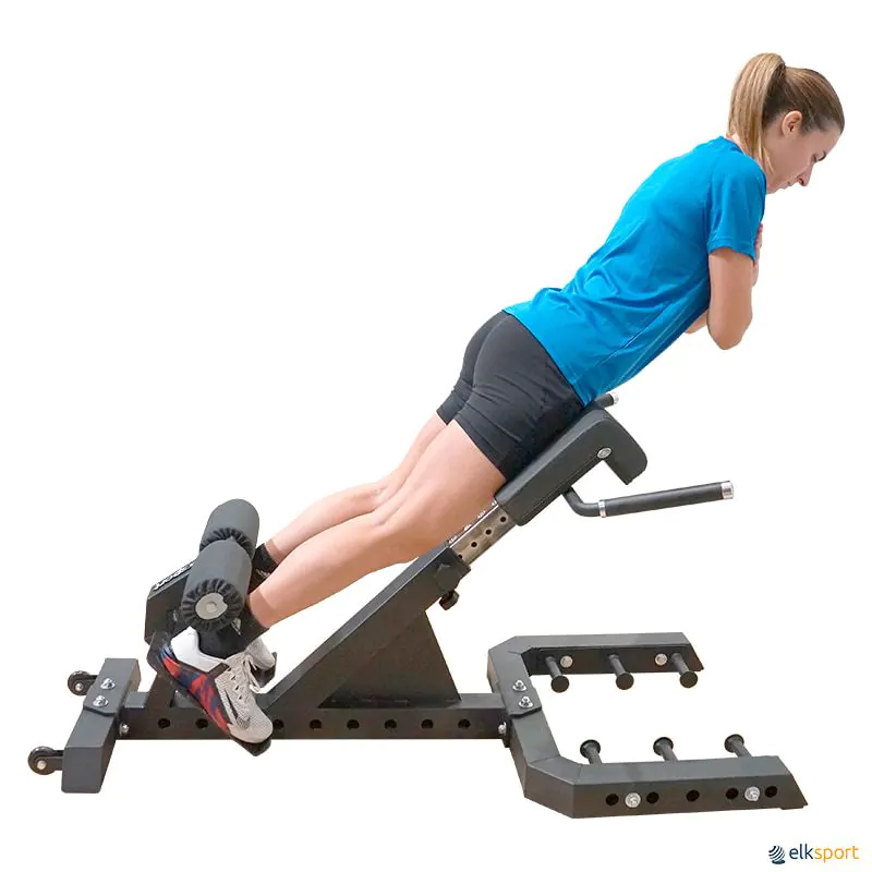 Banco multifuncional com um excelente design para treinar a musculatura inferior das costas, glúteos e isquiotibiais, realizando exercícios com o peso corporal.