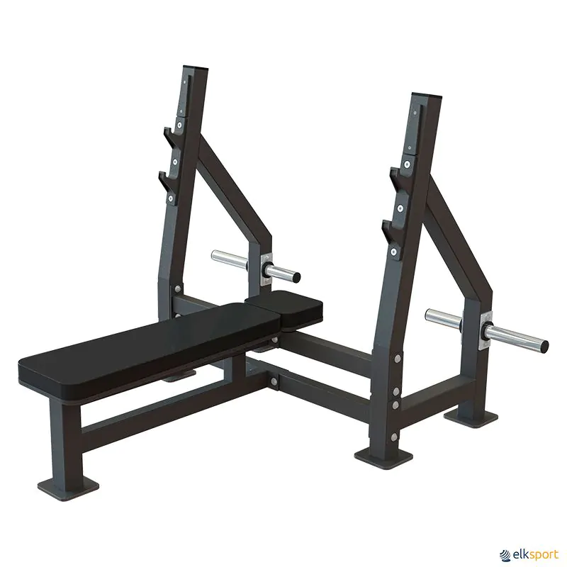 Banco fabricado em tubo de aço de alta resistência. O seu design aberto e o acolchoamento espesso em espuma de alta densidade adaptam-se a qualquer morfologia de utilizador e permitem tirar o máximo proveito no treino de peito. Munido de quatro suportes para armazenamento do discos olímpicos tendo assim acessíveis os discos de que precisa.