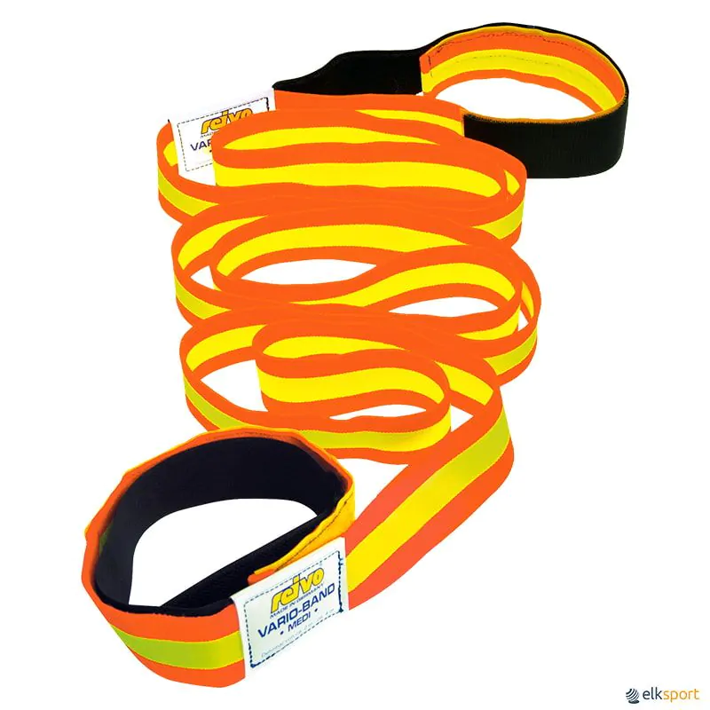 Também existe em bicolor (Amarelo/Laranja) de marca Reivo: BANDA ELÁSTICA DELIMITADORA BICOLOR em 4 comprimentos.