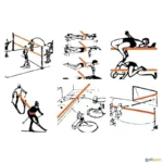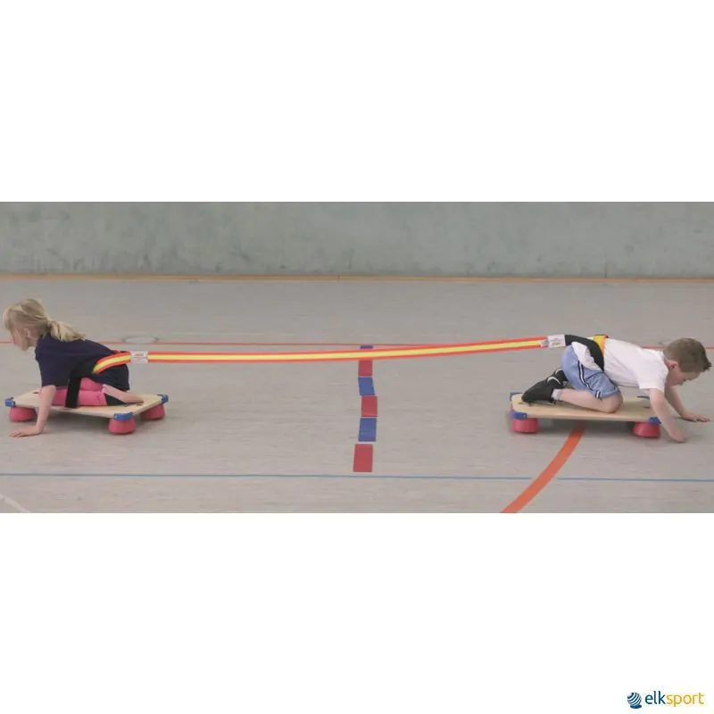 Conjunto de cintas desenhadas para ajudar os companheiros a manterem-se juntos durante os jogos de cooperação. Cada cinta é colocada no punho de um e outro jogador fixando-se com um velcro o qual não se deverá soltar se as tarefas foram corretamente executadas. Conjunto de 15 pares em 2 cores para facilitar o trabalho do professor na composição das equipas.