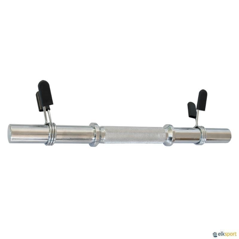 Mini barra de aço cromado para discos de 30 mm de ø com zona de pega antiderrapante, inclui molas de bloqueio . Ideal Para exercícios de Body Pump e treinos de força. Pode ser usada com os discos de Body Pump.