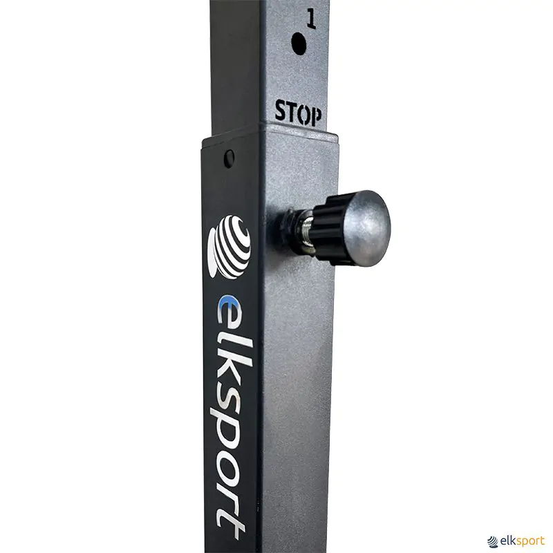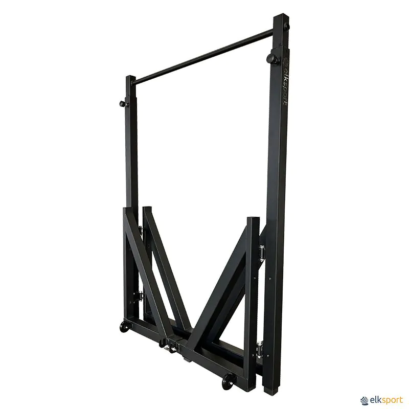 Perfeita para centros educacionais ou academias onde não há espaço para deixá-la fixo. É fácil de montar, mover e dobrar para armazenamento. A altura se ajusta de 158,3 a 218,3 cm em incrementos de 10 cm permitindo que seja útil para vários usuários. Um indicador STOP gravado na a estrutura evita o aperto excessivo. Estrutura de aço revestida a pó altamente durável, base de borracha para proteger os solos. Ao fim do exercício, é só dobrar a estrutura e prender as pernas usando os ganchos das dobradiças.