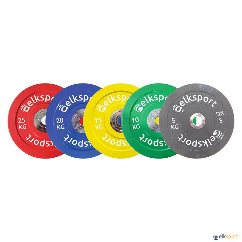 Durabilidade extrema e grande amortecimento ao contacto com o solo. Medidas e cores de acordo com a Federação Internacional de Halterofilismo (IWF). Preço por unidade de disco.