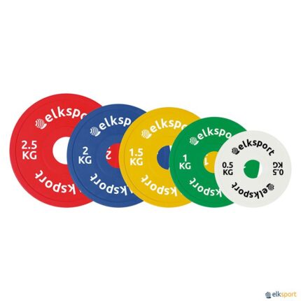 · Disponível em 5 Pesos: 5 kg (cinzento) / 10 kg (verde) / 15 kg (amarelo) / 20 kg (azul) / 25 kg (vermelho)