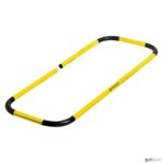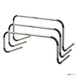 Fabricada em tubo de aço de 20 mm, pintada a pó para maior durabilidade. Parte superior fabricada em tubo redondo de alumínio de 22 mm. O mecanismo de mola na base permite que o obstáculo volte à sua posição quando o atleta o derruba. A barreira pode ser ajustada a diferentes alturas.