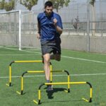 Uma das maiores perdas de tempo nas tarefas onde se utilizam barreiras, é colocá-las em pé quando derrubadas. Com esta barreira em que o peso é distribuído de maneira diferente, volta sempre à sua posição. As partes de apoio podem girar para o interior para um transporte e armazenamento perfeitamente plano. Fabricadas em PVC praticamente inquebráveis.