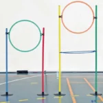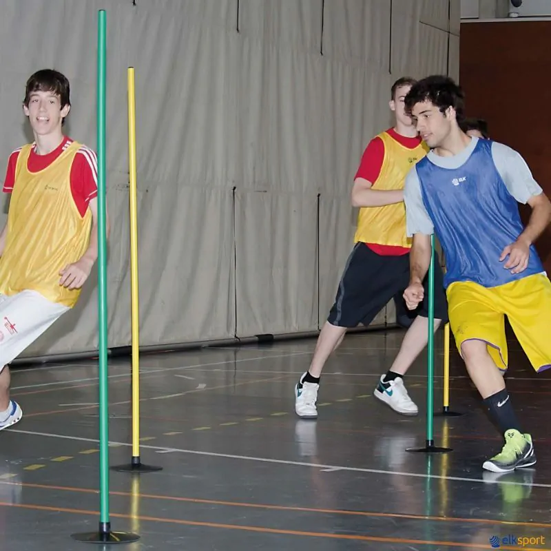 Base lastrada plana em borracha, de grande estabilidade, mesmo quando o terreno de jogo é um pouco irregular. Ideal para formar circuitos de habilidade, de precisão, etc. combinando-a com bastões e arcos.