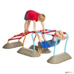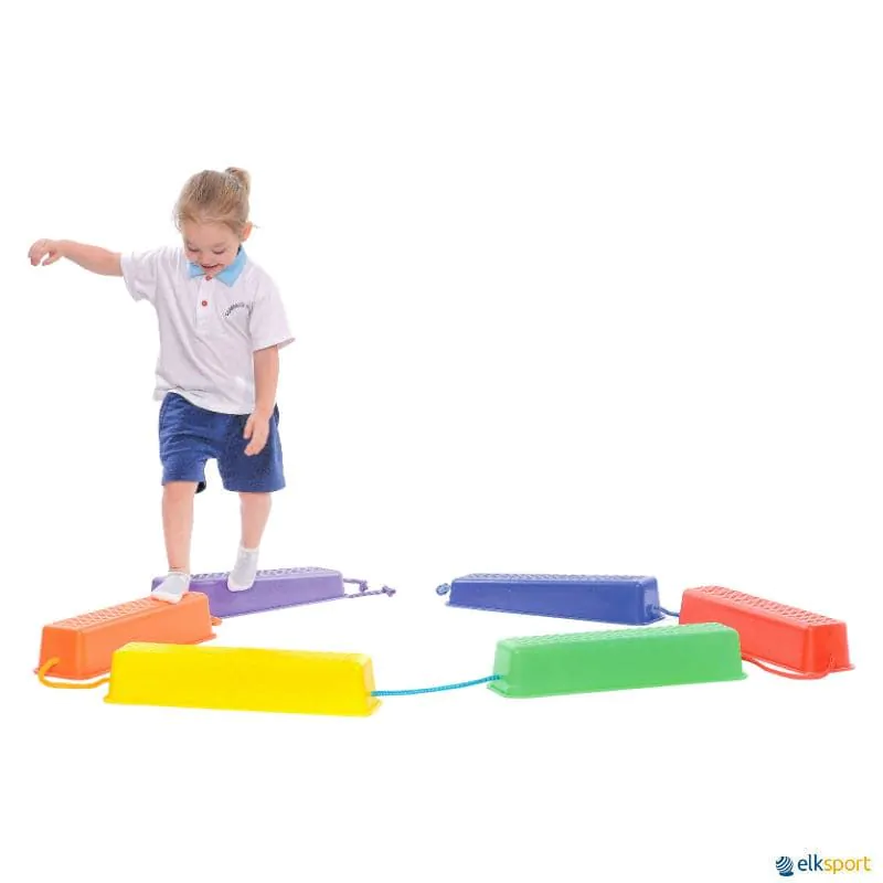 Peças para construção de caminhos de equilíbrio, fabricadas em plástico forte com borracha antiderrapante na base.