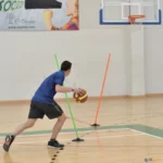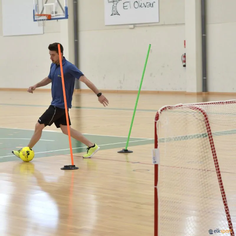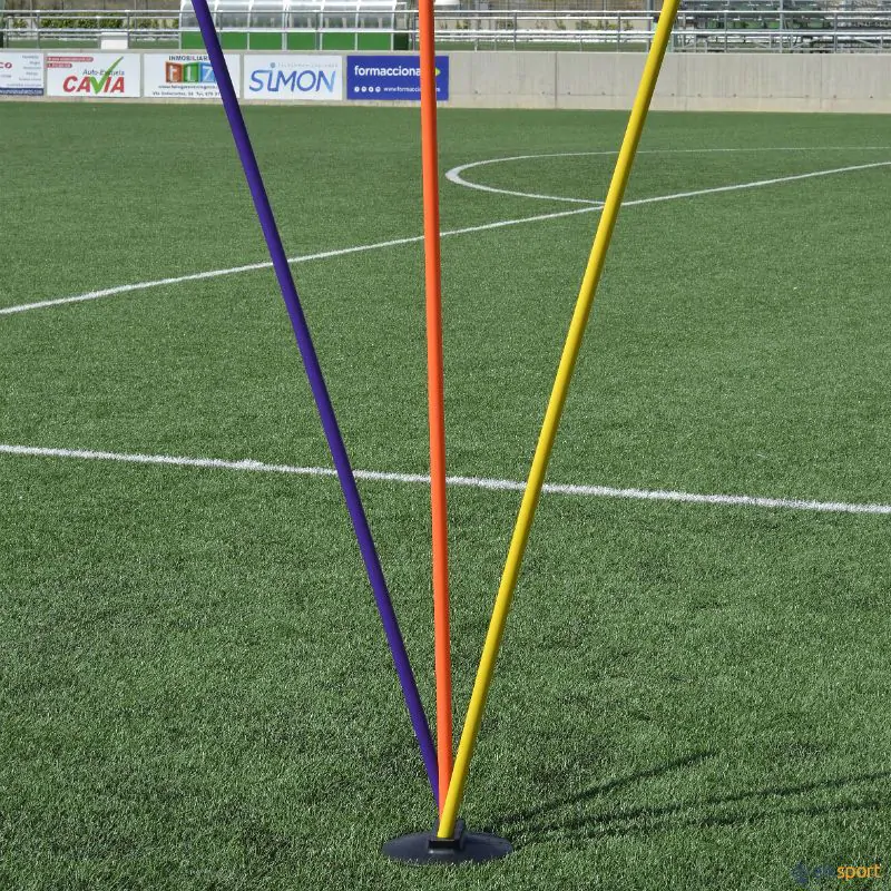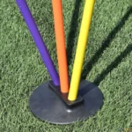 Base de borracha resistente com furos realizados com inclinações. Permite assim utilizar até 3 bastões de Ø 25 mm em 3 direções diferentes, para exercícios de habilidade ou precisão.