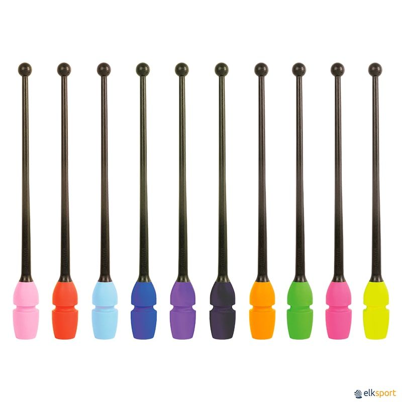Bastão para ginástica rítmica fabricada em fibra, com pega antiderrapante.