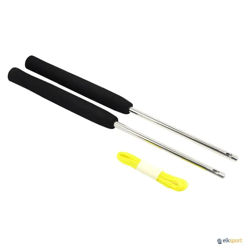 Bastões em alumínio e com pega de borracha. Corda incluída.