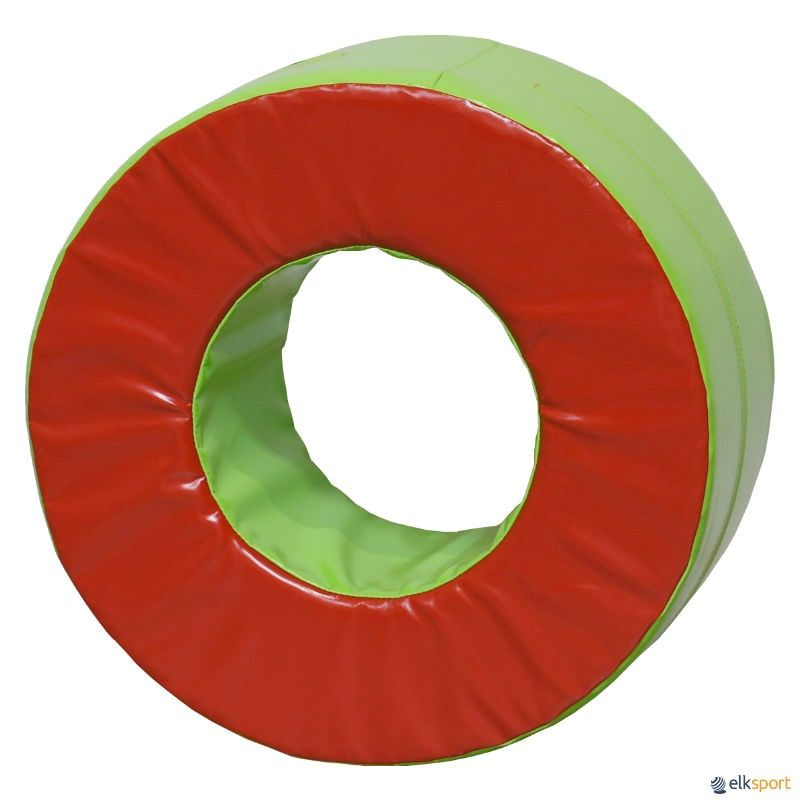 Forma geométrica de espuma forrada, em forma de roda pequena.