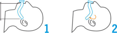 1 - Medir desde os incisivos até ao lóbulo da orelha como referência e introduzir 2/3 do tubo com a abertura voltada para o palato (céu da boca).