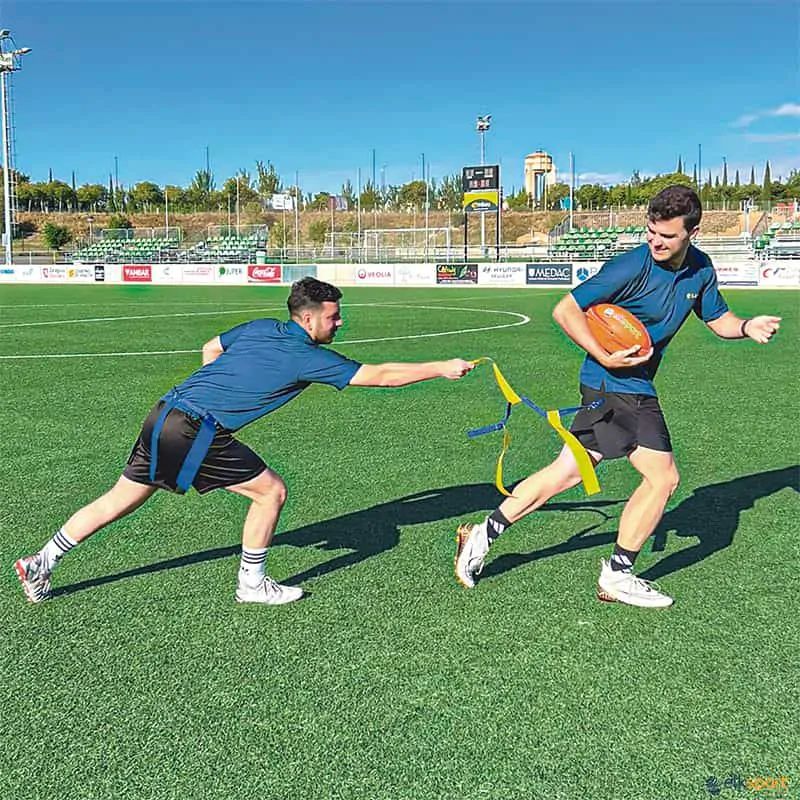 Este versátil cinto de placagem permite a utilização em muitos jogos e exercícios de flag-football ou rugby.