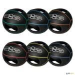 Bola medicinal com dupla pega para melhor aderência, fabricada em borracha de alta qualidade. A sua superfície rugosa com sulcos melhora a aderência durante a utilização, mesmo com as mãos suadas. Cor preta com linhas em diferentes cores para facilitar a identificação do peso.