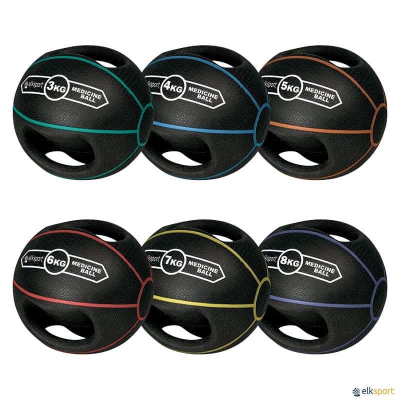 Bola medicinal com dupla pega para melhor aderência, fabricada em borracha de alta qualidade. A sua superfície rugosa com sulcos melhora a aderência durante a utilização, mesmo com as mãos suadas. Cor preta com linhas em diferentes cores para facilitar a identificação do peso.