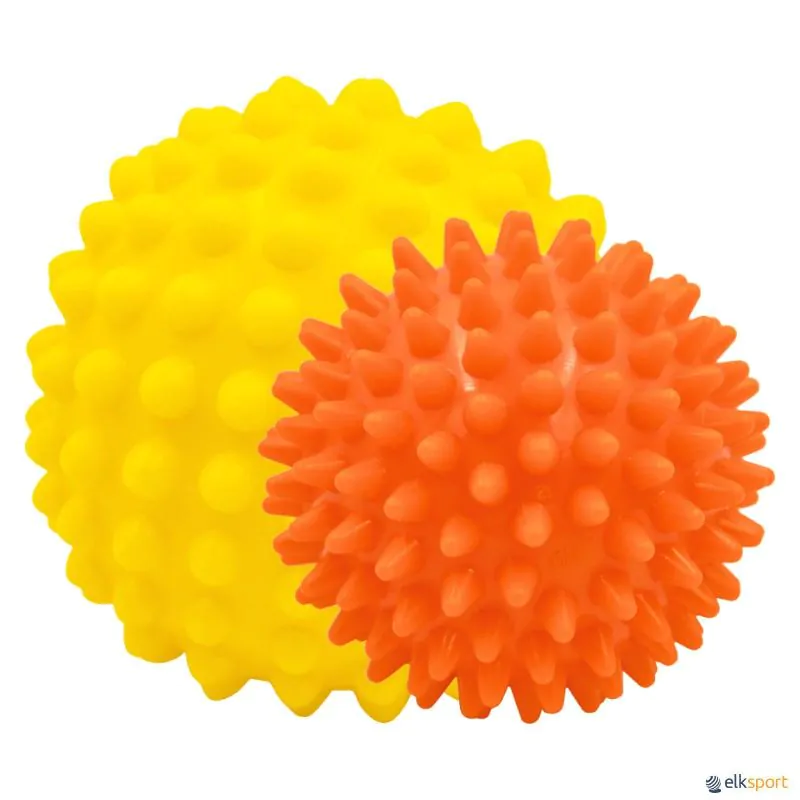Bolas em forma de ouriço da marca Gymnic, fabricadas em vinil, para massagens e estimulação sensorial, bem como para exercícios de preensão, especialmente em condições húmidas onde outras bolas podem escorregar. Não saltam. Sem látex, não tóxicas.