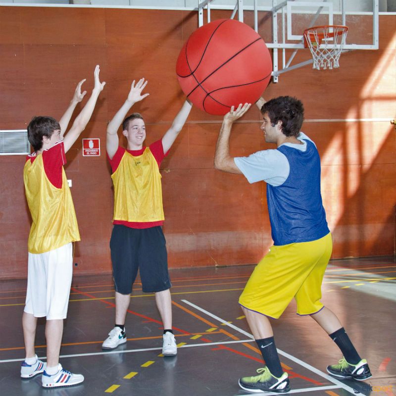 Bola de basquetebol de tamanho superior ao habitual, especialmente concebida para tornar o jogo mais acessível e motivador para todos. Pode ser utilizada para marcar pontos em cestos, fazer contacto com os painéis ou fazer ressaltos numa parede. Revestimento em nylon super resistente e câmara interior em látex. Inclui câmara de substituição.