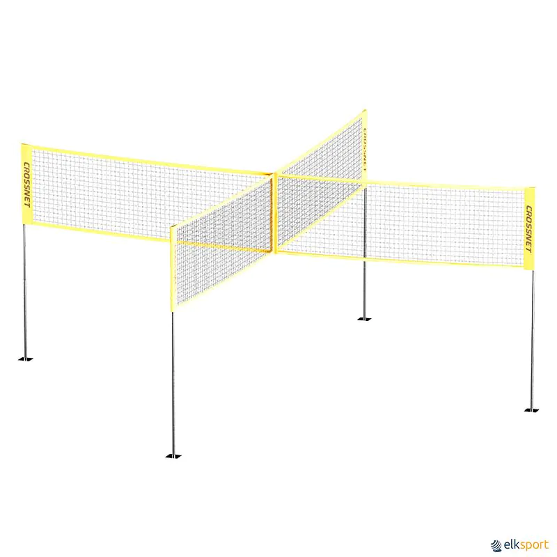 Crossnet é o primeiro jogo de voleibol de quatro quadrados do mundo e conta com uma rede de voleibol de quatro lados ajustável, que facilita a transição entre a altura regulamentar para homens (241 cm), mulheres (223 cm) e crianças (167 cm) num instante. Todas as peças são fabricadas com um material durável e leve que não se dobra, quebra ou rasga.