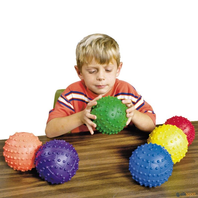 A bola supersensorial é a mais fácil de segurar, apanhar e lançar, com uma cobertura granulada especial sobre uma superfície macia. Possui ressalto regular e válvula de enchimento.