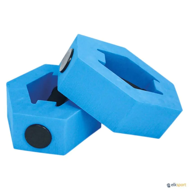 Halteres aquáticos fabricados em espuma de células fechadas em cores diferentes. Eles produzem uma resistência na água que ajuda a trabalhar a força, resistência e coordenação.