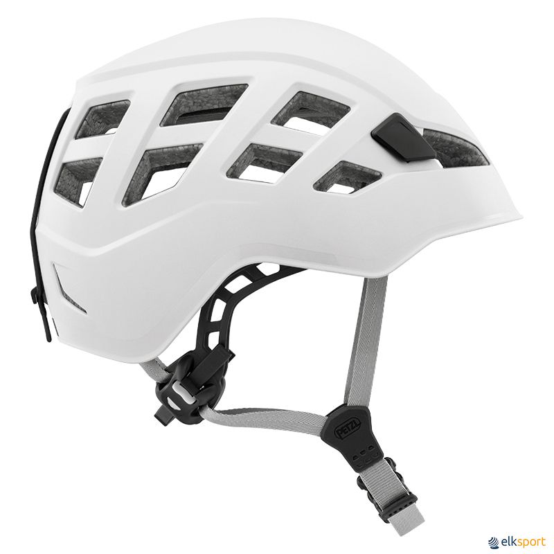 . Proteção total: O seu design envolvente, com a parte traseira mais baixa, oferece proteção superior contra queda de pedras e impactos laterais, frontais e traseiros. Certificado com o selo Top and Side Protection da Petzl, este capacete assegura segurança em todas as tuas atividades.