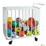 Carro porta bolas e outros materiais desportivos, tipo jaula. Fabricado em aço de alta resistência, com pintura eletrostática para uma maior durabilidade. Abertura e fecho do carro na parte superior e possibilidade de acrescentar um cadeado (não incluído).