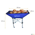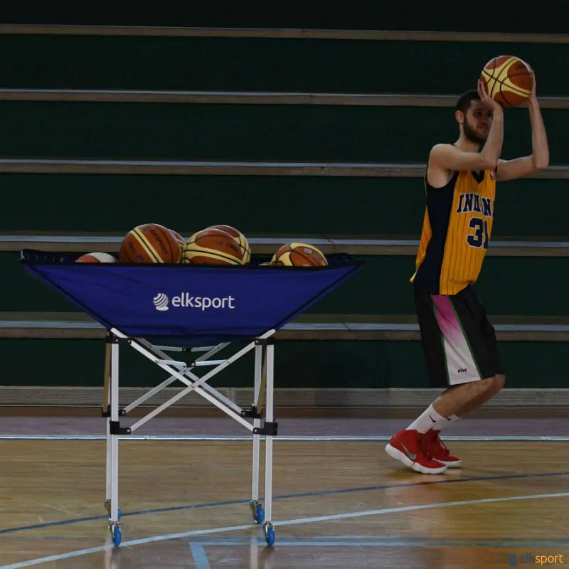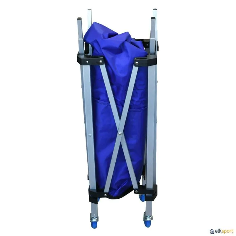 Ligeiro e ergonómico, pensado para armazenar bolas e outros acessórios. Estrutura em alumínio, cesto em lona de nylon azul, munido de redes nos topos laterais para evitar que o material saia do carro. Completamente dobrável. Permite armazenar 25 a 30 bolas a uma altura cómoda e acessível. A sua altura permite ainda que deslize facilmente por debaixo da rede de voleibol.