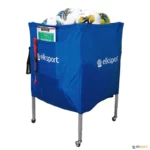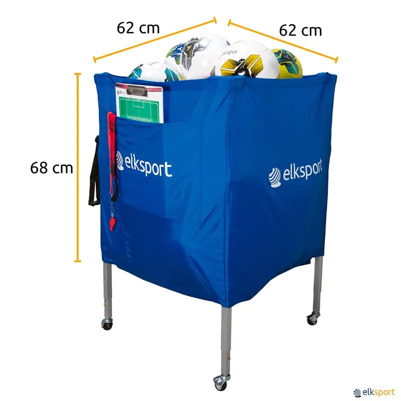 Carro de grande capacidade para mais de 40 bolas ou outros objetos. Estrutura de alumínio sobre rodas com saco em nylon muito resistente. Com 1 bolsa lateral e saco para armazenagem e transporte. Pés telescópicos reguláveis em 3 alturas, para facilitar o acesso, especialmente das pessoas mais altas.