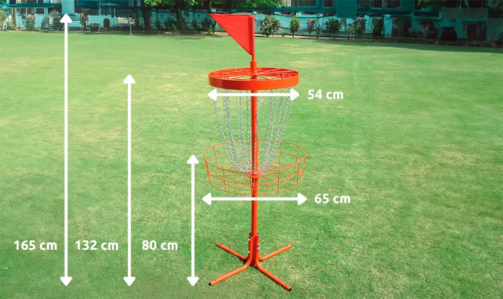Disc golf, também conhecido como cesta de disc golf, é uma cesta para jogar frisbee golf ou golfe com frisbee. A cesta de disc golf é fabricada com materiais de alta qualidade e grande durabilidade; a sua estrutura é em aço e possui correntes galvanizadas. Com um peso aproximado de 12 kg, a cesta é leve, dobrável e fácil de transportar, permitindo praticar o putting e outros lançamentos em qualquer lugar. Pode ser desmontada rapidamente e armazenada de forma plana e compacta quando não estiver a ser utilizada.