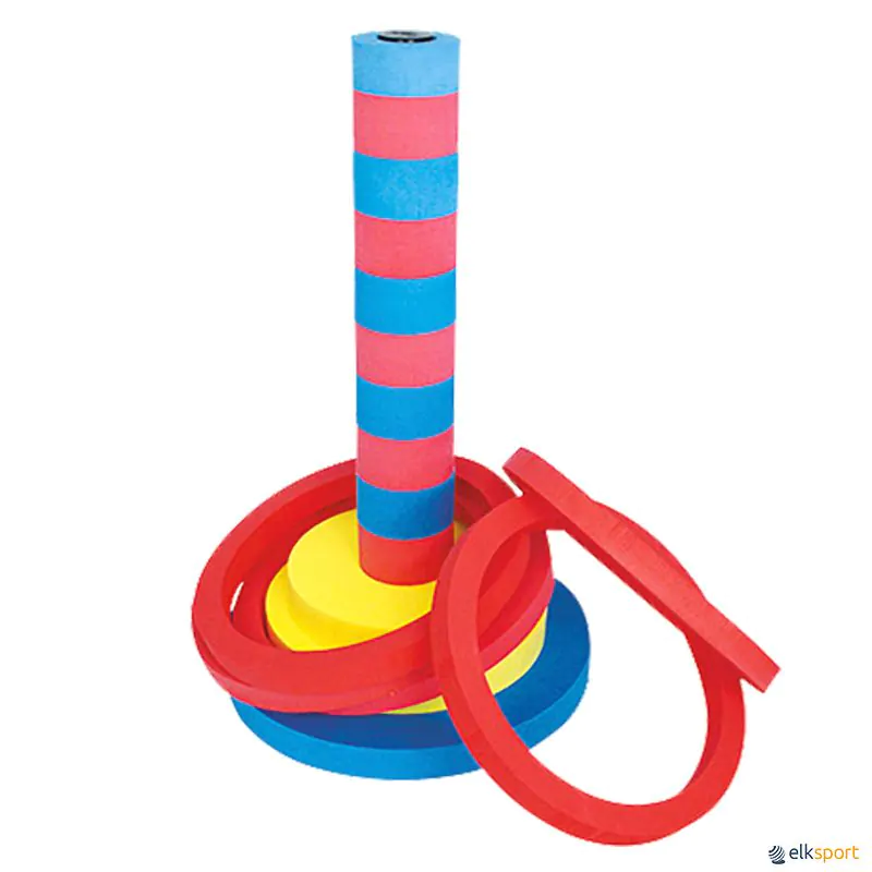 Composto por: 1 base com 3 discos, 1 mastro e 5 aros.