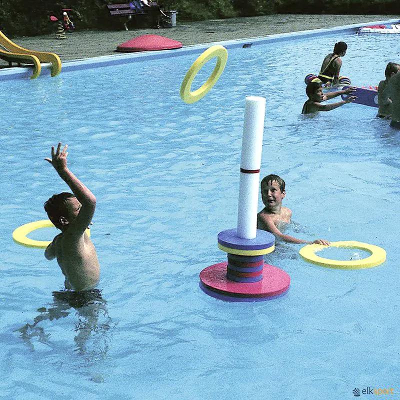 Jogo fabricado em espuma especial de alta qualidade. Desenvolve o equilíbrio, coordenação visual, destreza e a flutuação vertical da criança em situação de instabilidade própria ao meio aquático.