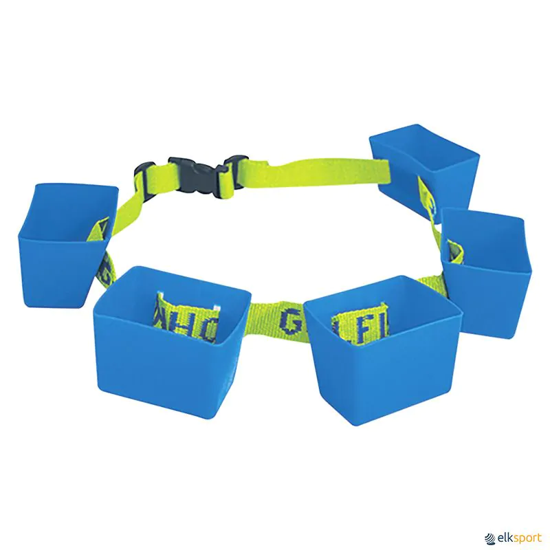 Cinto fácil de ajustar, composto por 5 cubos que produzem resistência na água. A resistência aumenta com a velocidade.