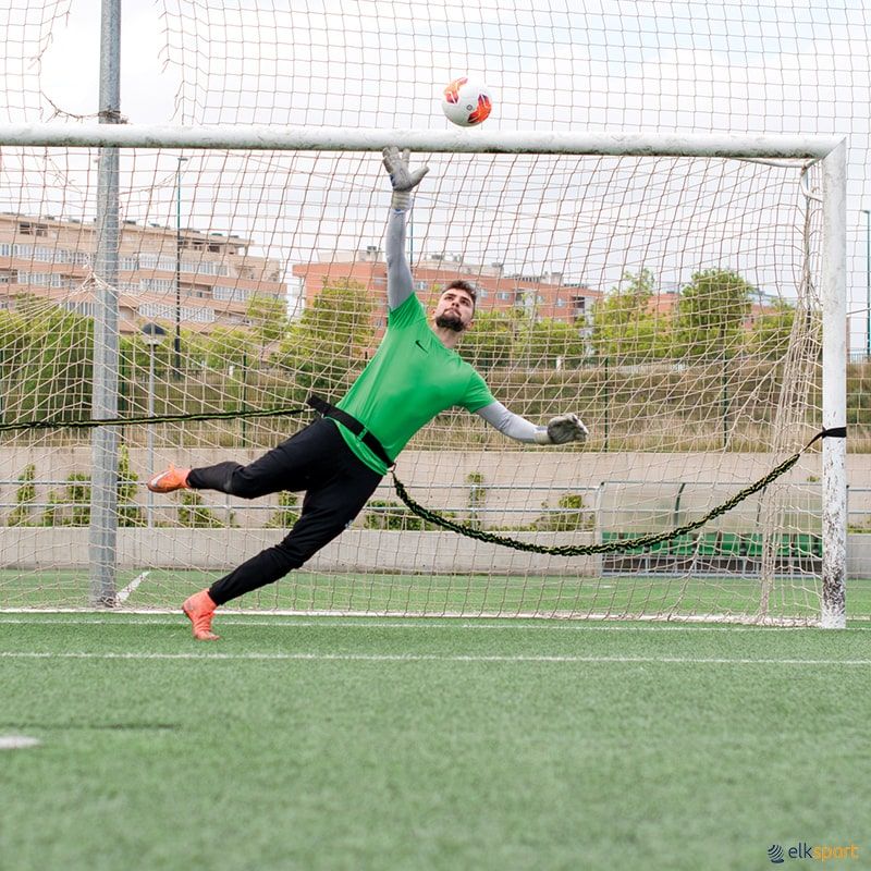 Fácil de fixar aos postes das balizas também permite ao guarda redes treinar e aumentar a sua força explosiva.