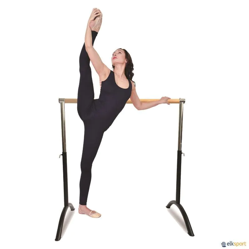 Barra de ballet portátil. Leve e fácil de transportar. Para realizar exercícios de barra, treinos de força versátil, massagem nas pernas, alongamentos de pé, etc. Ajuda a trabalhar os músculos dos braços, peito, costas e centro usando o peso do próprio corpo. A altura é ajustável para todas as idades. Fabricado em aço com acabamento epóxi. Decoração da barra metálica imitação madeira. Pés antideslizantes. Entregue desmontada.