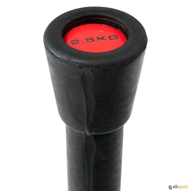 A clubbell de 2,5 kg esta revestida de borracha para redução do ruído e impacto se cair.