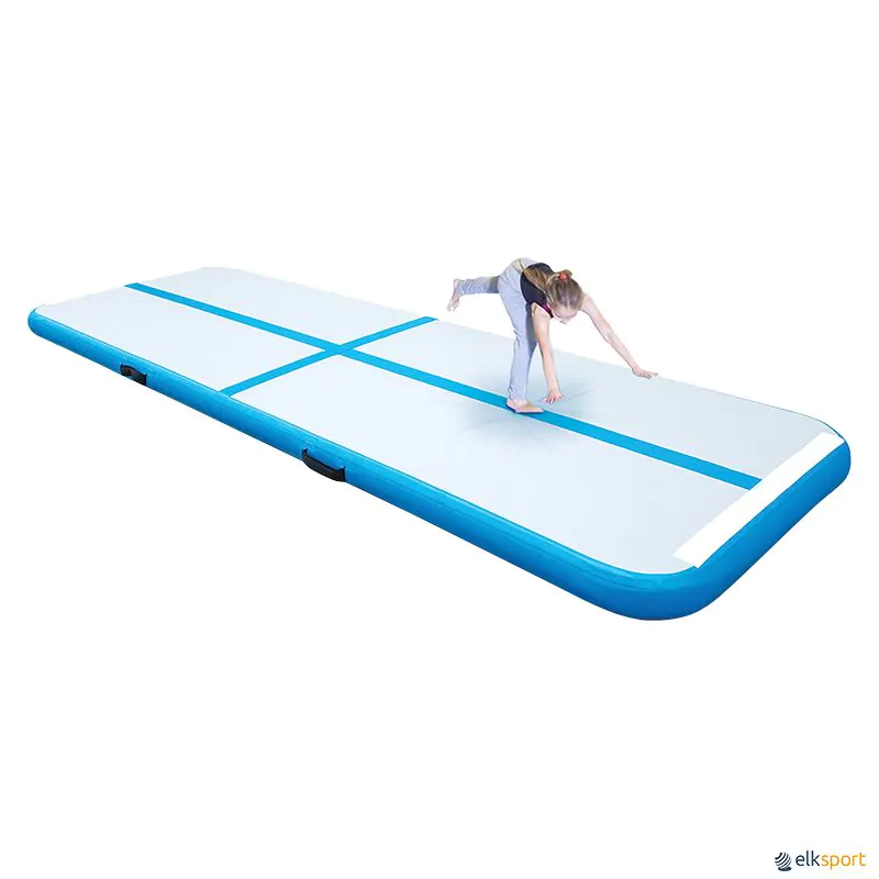 Colchão indicado para todo o tipo de exercícios de solo. Permite regular a pressão do ar em função do exercício ou do peso do praticante, para saltos mais altos.