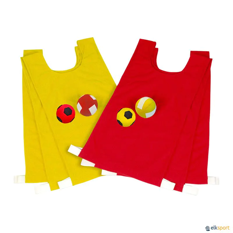 Conjunto de coletes alvo, com uma superfície exterior onde aderem as bolas de velcro. Isto possibilita muitas atividades e jogos de precisão, estáticos, ou em movimento, individualmente ou em equipas.
