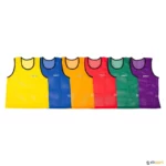 Coletes em poliéster, muito resistentes e agradáveis ao tato. Tecido tipo malha, respirável. Laváveis e personalizáveis, pensados tanto para o meio escolar, como para os treinos nos clubes.