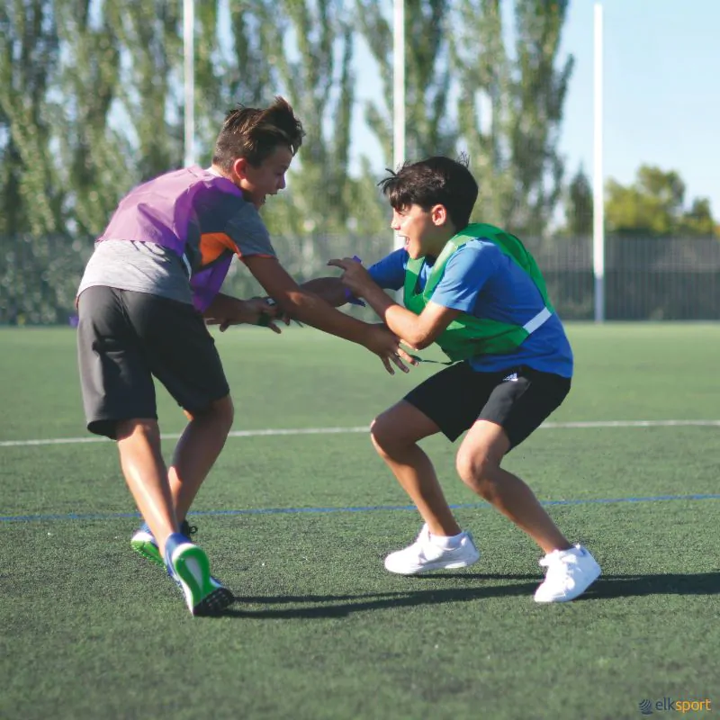 Ao acrescentar tiras com velcro, transformamos os nossos coletes num elemento muito versátil. Cada colete está equipado com 4 tiras com velcro de cor diferente. Podem assim ser utilizados em diversas atividades, desenvolvendo habilidades físicas e cognitivas como: perceção espacial, resistência cardiovascular, velocidade de reação, esquivar, capturar, desafiar, cooperar, entre outras. Podem ser usados em inúmeros jogos populares, assim como para praticar flag football, touch rugby ou futebol americano.