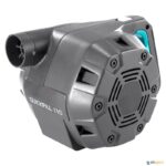 Compressor elétrico 220V pequeno, leve, fácil de transportar e utilizar. Carcaça de plástico. Inclui uma agulha de boca larga e 2 adaptadores de plástico. Manómetro integrado. Tempo médio para encher uma bola de basquetebol T7: 26 segundos.