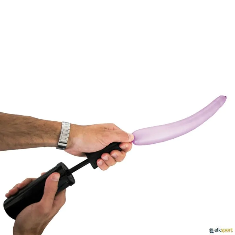 Compressor elétrico 220V pequeno, leve, fácil de transportar e utilizar. Carcaça de plástico. Inclui uma agulha de boca larga e 2 adaptadores de plástico. Manómetro integrado. Tempo médio para encher uma bola de basquetebol T7: 26 segundos.