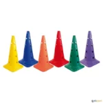 Graças à pega na zona central, permitem realizar múltiplos exercícios sem escorregar ao agarrá-los ou ao disputá-los entre jogadores. Fabricados em plástico injetado de alta qualidade, são muito resistentes a impactos ou quedas. Base larga muito estável e podem ser facilmente empilhados. Dispõem de um orifício no topo do cone que permite introduzir estacas, aumentando assim as suas possibilidades de utilização.