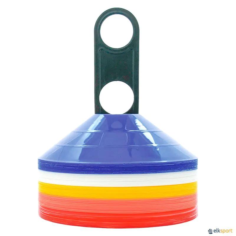 Medio: Sinalizadores Ø 20 cm e 5 cm de altura. Lote de 50 em 5 cores: amarelo, branco, vermelho, azul e laranja.